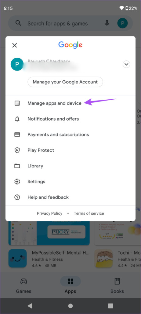 Étape 3 : Sélectionnez Gérer les applications et l’appareil.