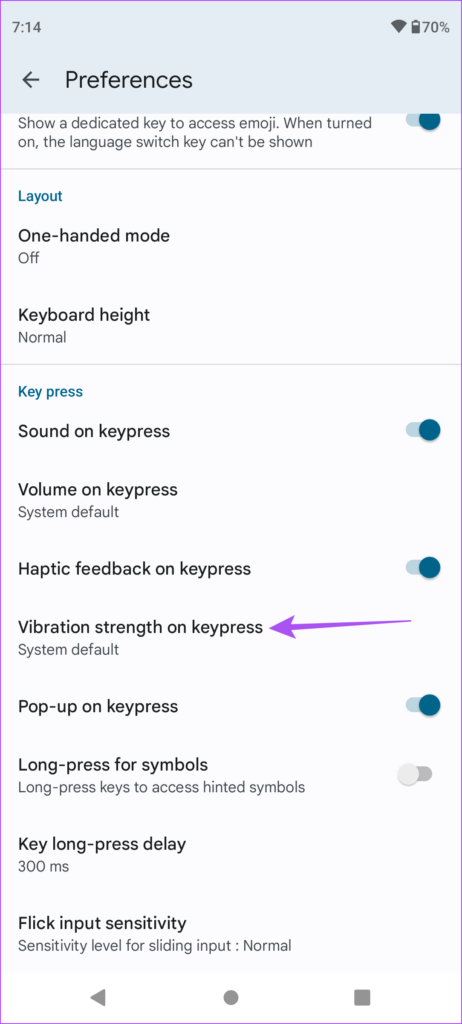 La première solution pour corriger le retour haptique qui ne fonctionne pas sur votre clavier Android est de vérifier ses préférences, en particulier si le retour haptique pour la pression des touches a été activé ou non. Par défaut, cette fonctionnalité est activée sur votre téléphone Android. Mais cela vaut vraiment la peine de vérifier la même chose.