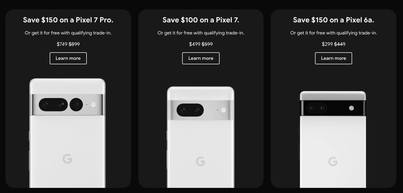 Tout d’abord, parlons des téléphones. Google réduit le Pixel 7 de 100 $ et le Pixel 7 Pro de 150 $. Cela leur fait respectivement 499 $ et 749 $. C’est, bien sûr, pour les modèles de 128 Go. Ces deux produits étaient déjà en deçà d’autres produits phares sur le marché, il est donc assez impressionnant de les voir encore moins chers.