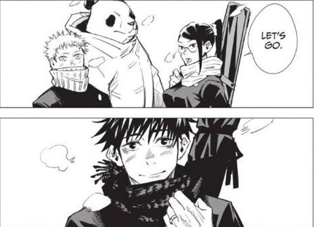 Lorsque Gojo a mentionné son ami à Yuta, le moment a servi de belle scène métaphorique et parallèle cinématographique aux amitiés de Gojo et Yuta dans Jujutsu High. Si vous regardez cette scène, la scène suivante montre les visages heureux de Maki, Panda et Toge. Et Yuta sourit après avoir vu les visages heureux de ses”meilleurs amis”. Akutami a magistralement conçu cette scène débordante d’émotions saines plutôt que de révéler les derniers mots prononcés par Gojo lors des adieux de son ami. Ce sont de petits moments comme celui-ci qui nous ont fait tomber amoureux de l’anime Jujutsu Kaisen.