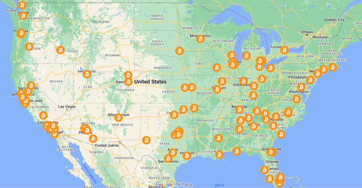 Les principales rencontres Bitcoin rien qu’aux États-Unis. Carte courtoisie de Josh.