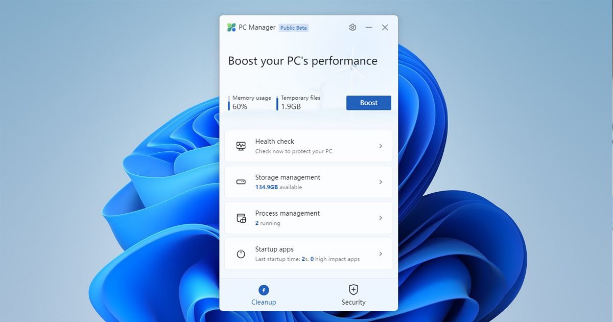 Microsoft PC Manager a une section dédiée pour améliorer les performances du PC. Vous devez lancer l’application et cliquer sur le bouton Boost.