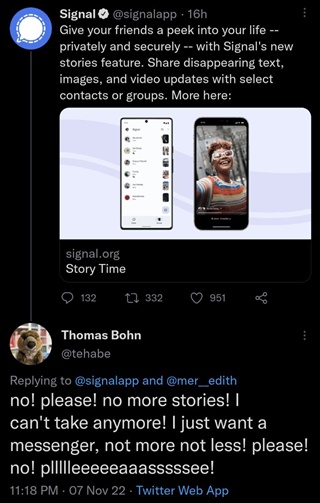Quoi qu’il en soit, il est clair qu’une partie importante de la base d’utilisateurs de Signal n’est pas satisfaite de la fonctionnalité.
