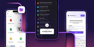 Les applications offrent également un accès hors ligne aux fichiers et dossiers afin qu’ils soient accessibles sans connexion Internet. Si l’accès hors ligne est activé pour un fichier ou un dossier, ils sont cryptés et enregistrés sur l’appareil afin qu’ils ne soient accessibles que via l’application Proton Drive.