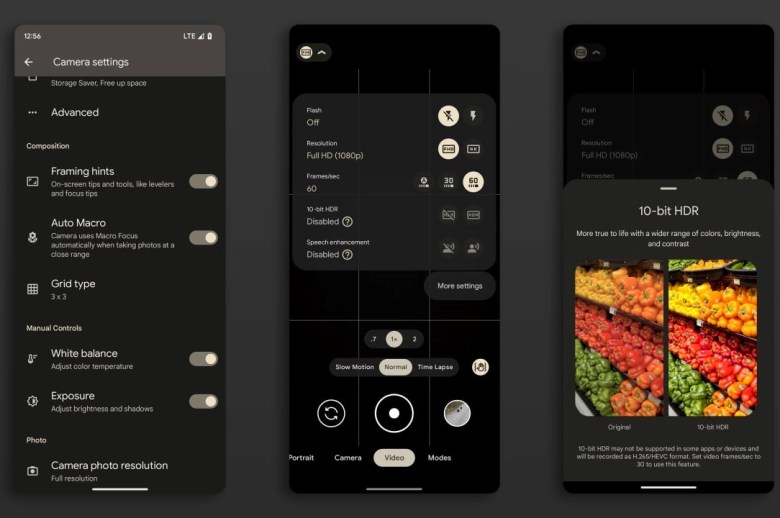 Le bouton des paramètres rapides en haut comporte désormais des icônes correspondantes pour chaque mode de capture. Pour la vidéo, les paramètres rapides affichent la qualité actuelle et indiquent si l’« amélioration de la parole » est activée ou non. L’icône de l’obturateur en mode mouvement a été modifiée pour le Pixel 6 et les versions ultérieures. Ajout de l’animation d’ouverture de l’onglet”Modes”qui manquait dans la version précédente. Ajout de la fonctionnalité”Visages fréquents”qui a été désactivée il y a quelque temps. Mise à jour de l’interface du curseur de zoom. La vue nocturne mise à jour vous permet désormais de choisir l’intervalle de prise de vue de 3 à 6 secondes. (Également applicable à la vision nocturne automatique en mode appareil photo) Ajout d’un nouveau mode”Cinématique”. Ajout d’un commutateur HDR 10 bits aux paramètres rapides en mode vidéo. Ajout du commutateur”Auto Macro”dans les paramètres du Pixel 7 Pro.