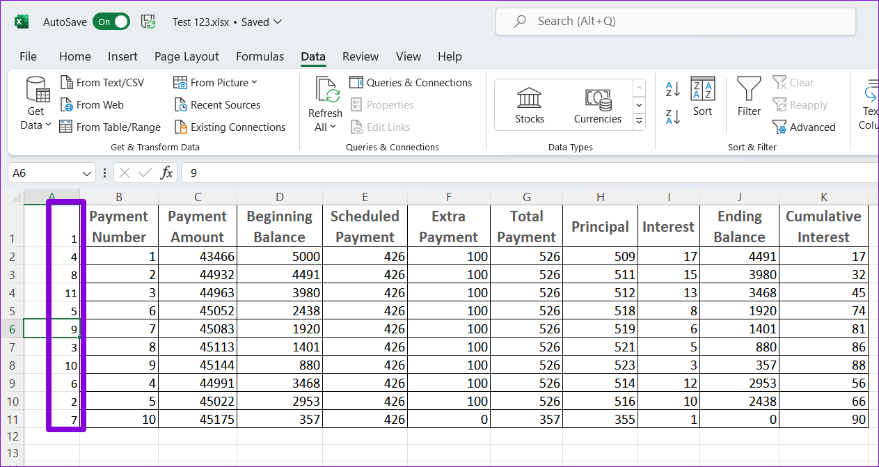 Étape 2 : Dans la nouvelle colonne, saisissez l’ordre de tri de vos lignes.