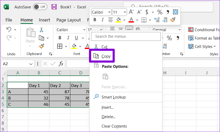 Étape 2 : Bon-cliquez sur votre sélection et sélectionnez Copier.
