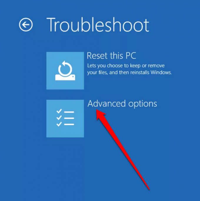 - Cliquez sur Options avancées sur l’écran d’erreur.