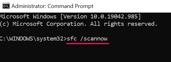 - Ensuite, collez sfc/scannow dans le terminal et appuyez sur Entrée.