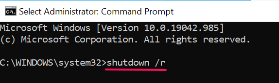 - Enfin, collez shutdown/r dans le terminal d’invite de commande et appuyez sur Entrée pour redémarrer votre PC.
