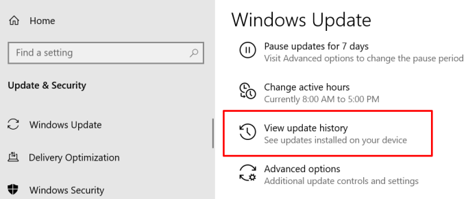 - Accédez à Paramètres > Mises à jour et sécurité > Windows Update et sélectionnez Afficher l’historique des mises à jour.