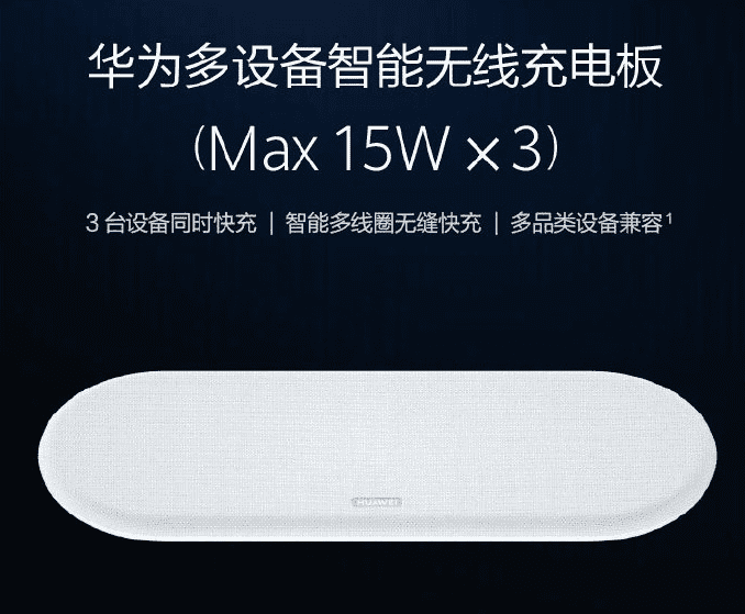 Aujourd’hui, Huawei a officiellement lancé une nouvelle carte de charge sans fil intelligente multi-appareils. Cette carte de charge sans fil prend en charge une grande zone de charge de 15 W (x3). Cela signifie qu’il peut charger trois appareils en même temps. De plus, tous les appareils se rechargeront à 15 W.