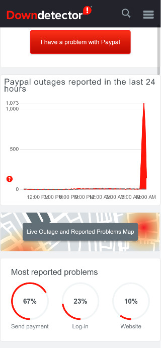 Le détecteur de panne-un service populaire qui donne des informations sur les pannes en direct-indique également que PayPal traverse effectivement un problème, comme le montre l’image ci-dessous :
