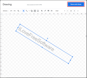 Une fois que vous avez terminé de créer le filigrane, cliquez sur « Enregistrer et fermer » et l’image du filigrane sera insérée dans le document.