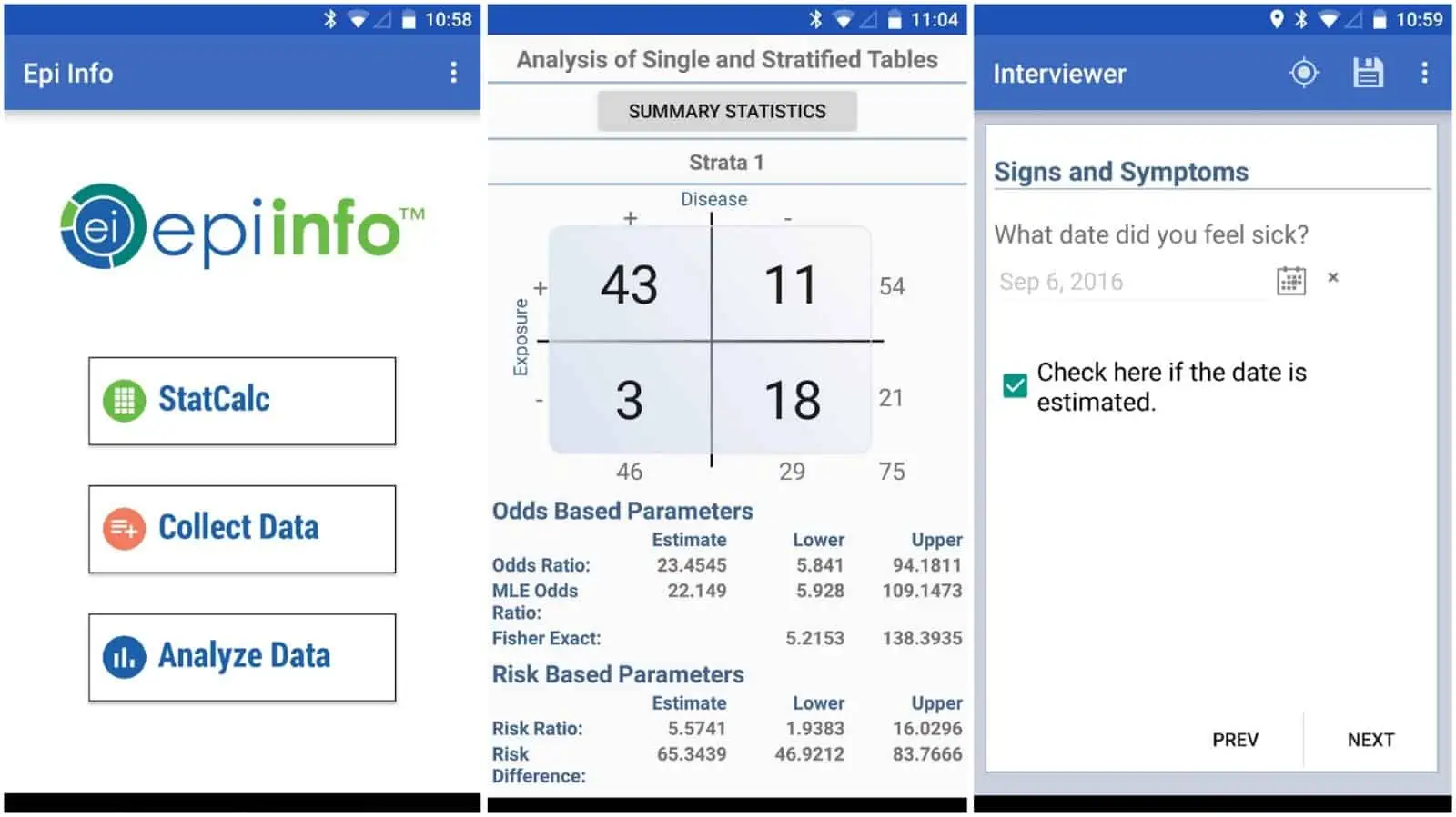 Az Epi Info tulajdonképpen egy nyilvános szoftverkészlet, amelyet a közegészségügyi szakemberek és kutatók globális közössége számára terveztek. Ez csak egy társalkalmazás Androidhoz, bár rengeteg funkciót hoz az okostelefonokba. Mindenesetre az Epi Info-nak köszönhetően a epidemiológusok kiszámolhatják a mintanagyságot, adatokat gyűjthetnek, és különféle elemzéseket végezhetnek okostelefonok segítségével.
