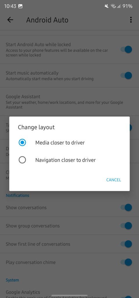 Az Android Auto telefon beállításaiban ellenőrizheti, hogy rendelkezik-e az időjárási lehetőséggel (azaz nincs coolwalk), vagy a widgetek lehetőséggel (azt jelenti, hogy van coolwalk)