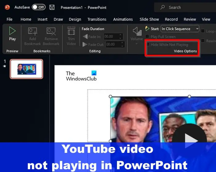 Az emberek feltölthetnek videókat egy Microsoft PowerPoint-prezentációba, de azok, akiknek esetleg nincs mentve egy adott videó a számítógépükön, választhatnak YouTube-videó hozzáadása helyett. Mostanság előfordul, hogy a YouTube-videók nem játszhatók le a PowerPointban, miután hozzáadták őket egy prezentációhoz. Ez kétségtelenül probléma, különösen akkor, ha a videót nem játssza le élő előadás közben. Tehát a kérdés az, hogy ez a probléma megoldható-e? Biztosan megteheti, és azt javasoljuk, hogy az élő adás előtt ellenőrizze, hogy minden működik-e.