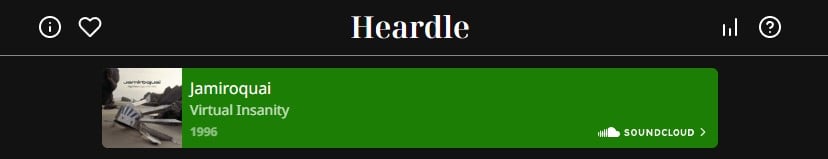 A fiatalabb Heardle-rajongókat talán megzavarhatja a mai dal, mivel a május 9-i, hétfői hivatalos válasz a Jamiroquai – Virtual Insanity.