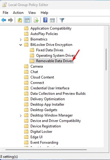 Számítógép konfigurációja > Felügyeleti sablonok > Windows-összetevők > BitLocker meghajtótitkosítás > Cserélhető adatmeghajtók