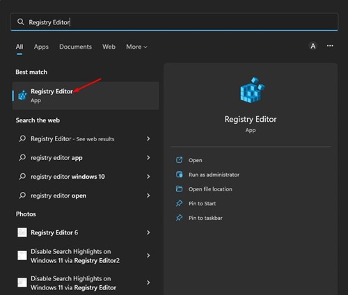 1. Először kattintson a Windows 11 keresőjére, és írja be a Registry Editor parancsot.