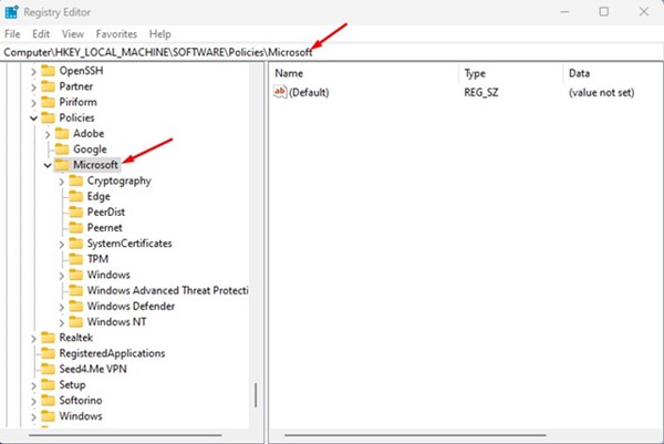 HKEY_LOCAL_MACHINE\SOFTWARE\Policies\Microsoft