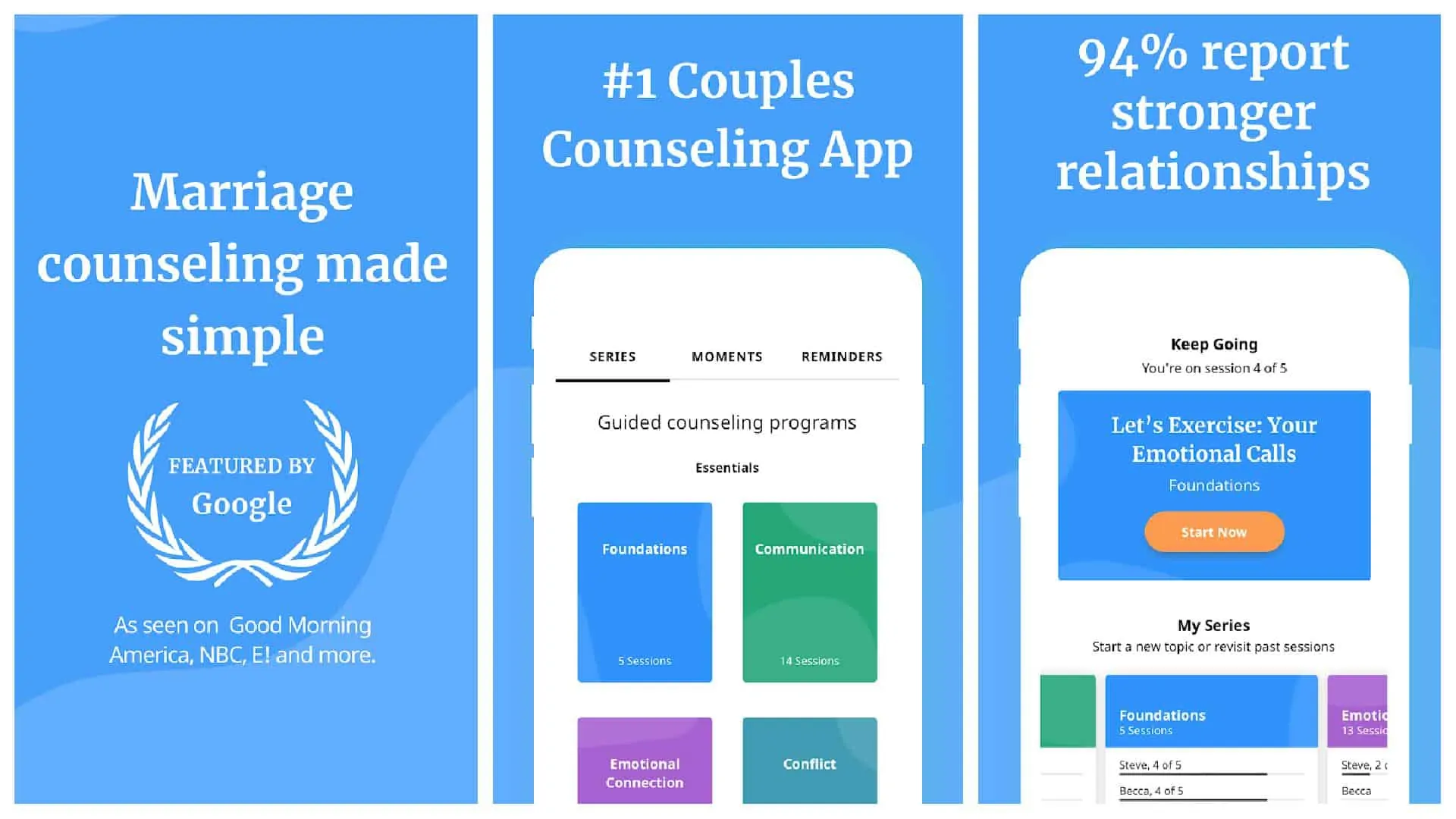 Aplikasi ini akan memungkinkan Anda untuk lebih memahami satu sama lain. Perhatikan bahwa Anda memerlukan langganan Premium untuk membuka kunci seluruh aplikasi untuk dua pengguna. Ini juga akan memungkinkan Anda untuk mengambil ratusan sesi Premium tentang berbagai topik. Topik tersebut meliputi Komunikasi, Konflik, Perbaikan, Hubungan Emosional, Hubungan Seksual, Hasrat Seksual, Kepercayaan, Uang, dan banyak lagi.