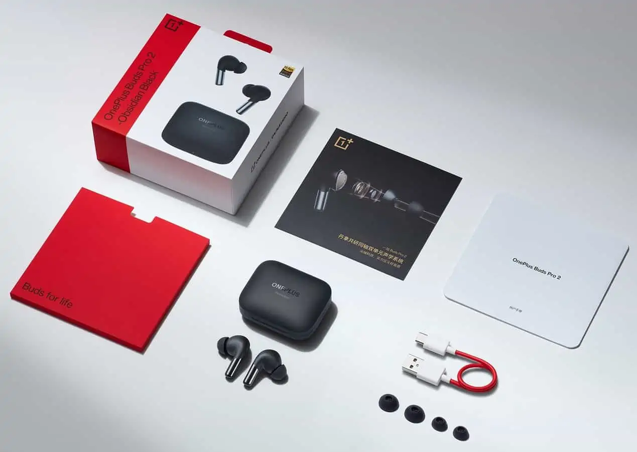 Kotak ini dengan jelas menegaskan bahwa varian hitam dari OnePlus Buds Pro 2 akan disebut’Obsidian Black’. Di dalam kotak, Anda akan mendapatkan earbud itu sendiri, tentu saja, bersama dengan beberapa dokumen.