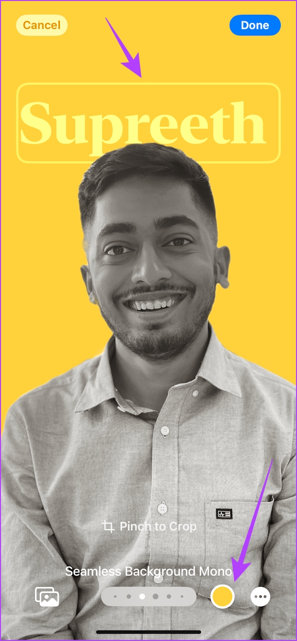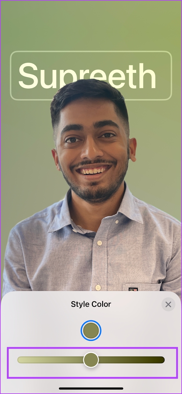 Anda dapat menggeser untuk menemukan berbagai varian poster foto dan mengetuk warna dan nama untuk menyesuaikannya seperti yang Anda inginkan.
