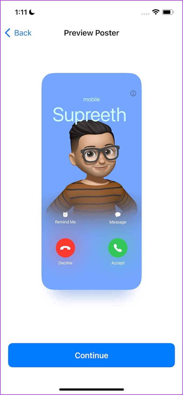 Anda juga dapat membuat Poster Kontak di iOS 17 menggunakan Memoji. Anda dapat memilih opsi Memoji saat membuat poster dan memilih Memoji pilihan Anda.