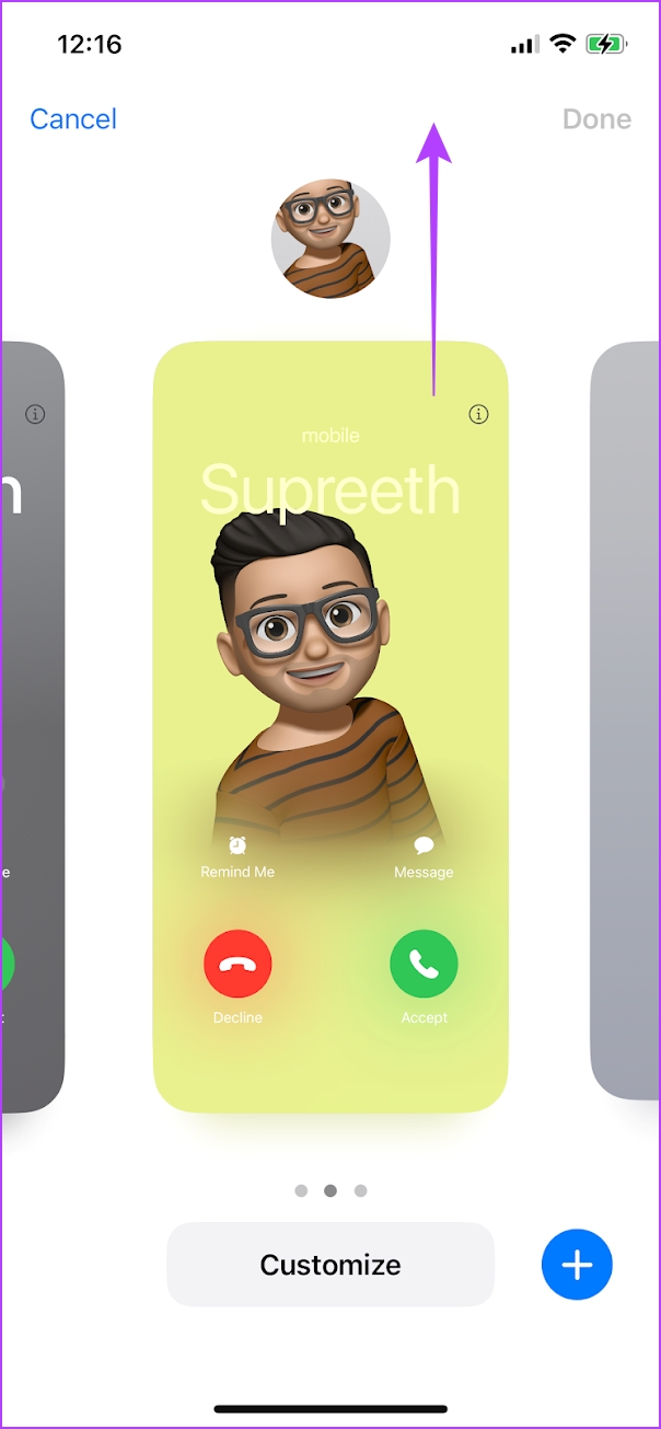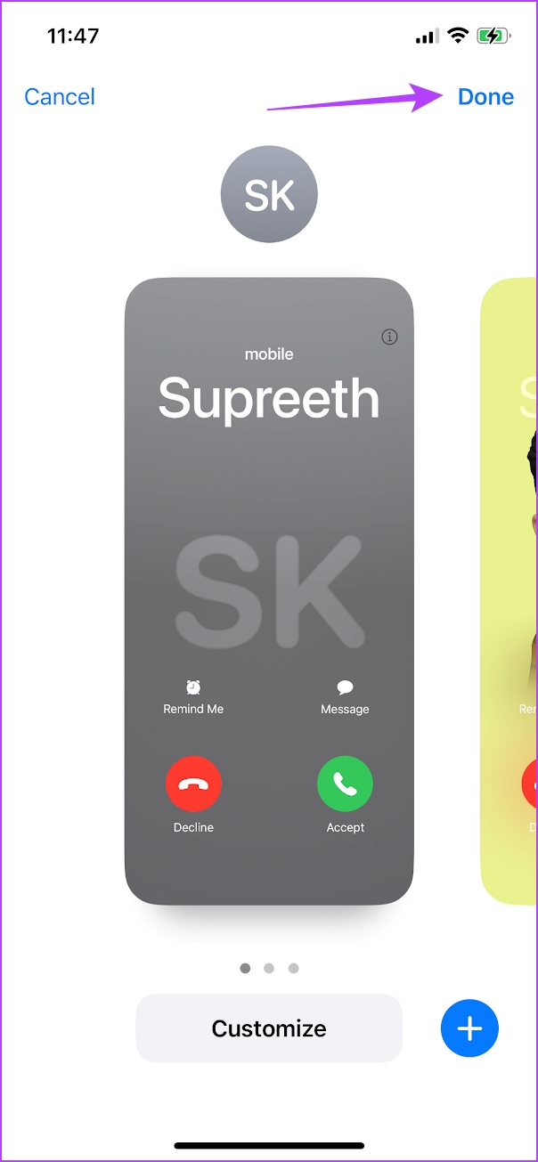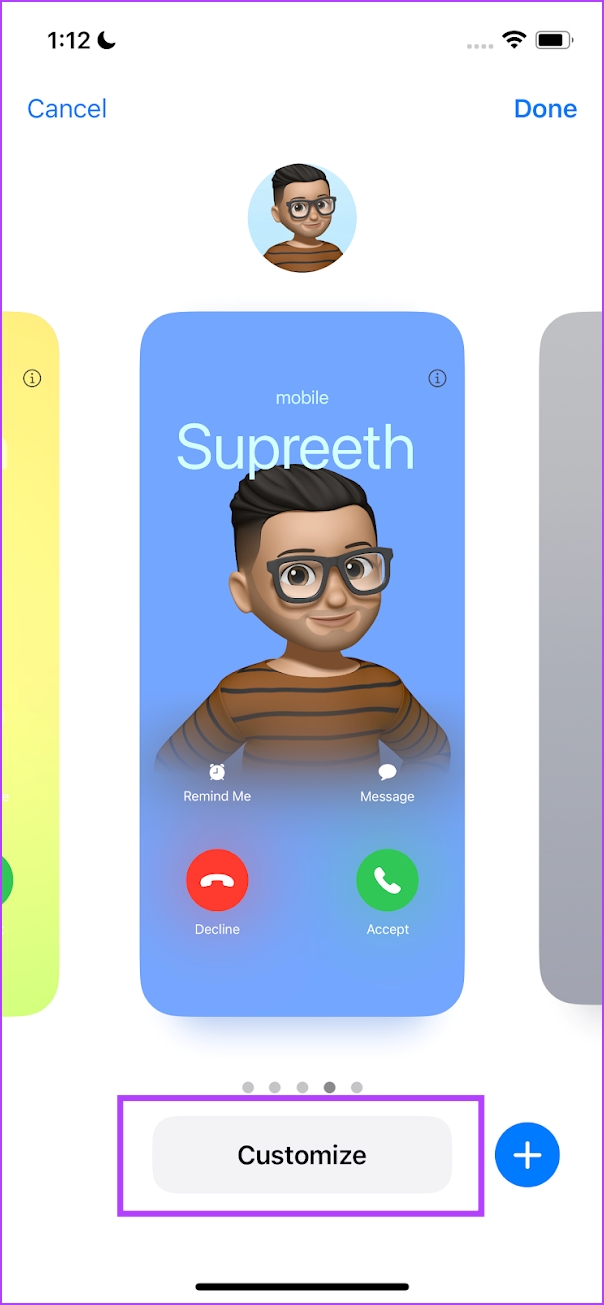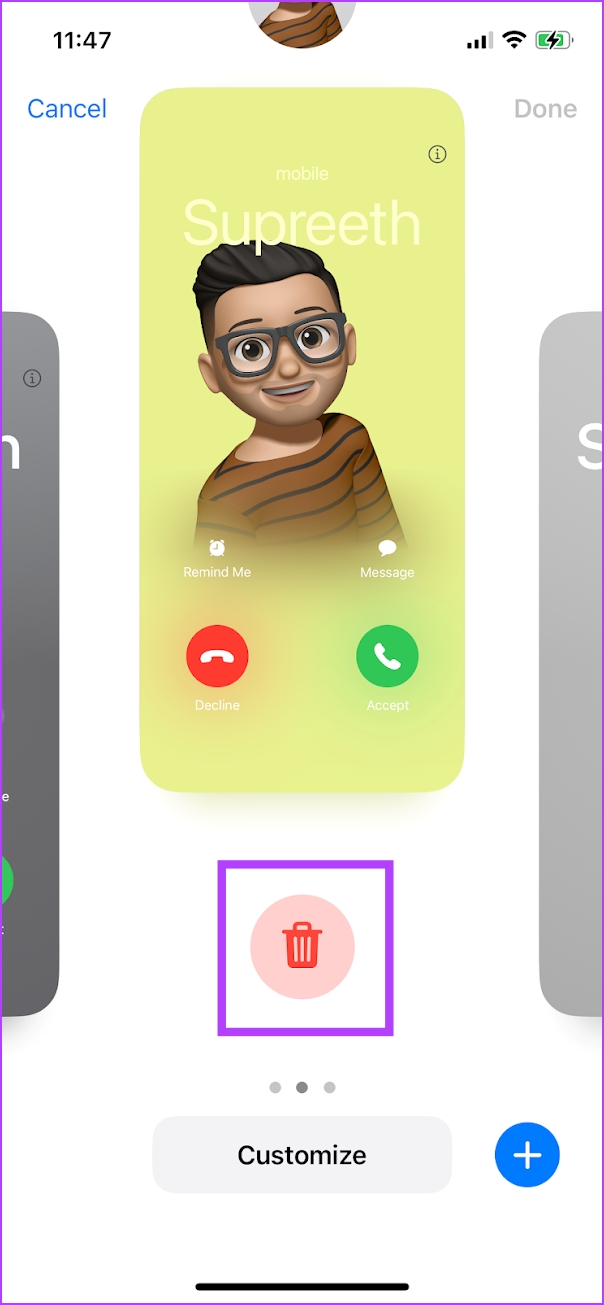 Jika Anda ingin memodifikasi Poster Kontak di iOS 17, Anda cukup mengetuk Kustomisasi tombol di bawah poster yang sudah dibuat.