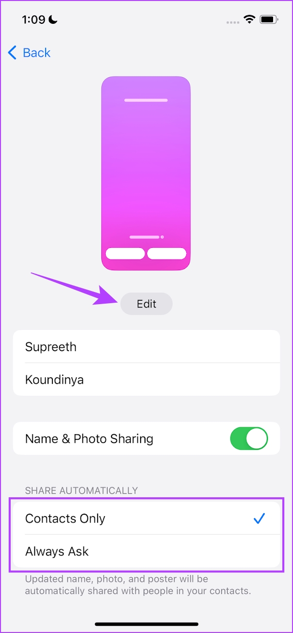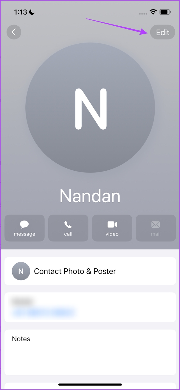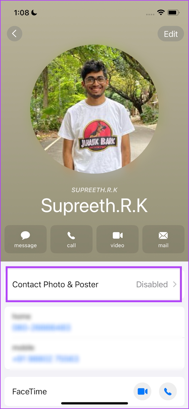 Langkah 2: Pilih kontak yang ingin Anda tambahi poster dan ketuk Edit.