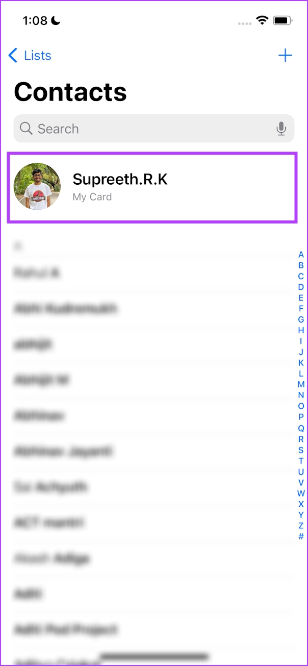 Langkah 2: Pilih kartu kontak Anda, yang merupakan opsi pertama dalam daftar.