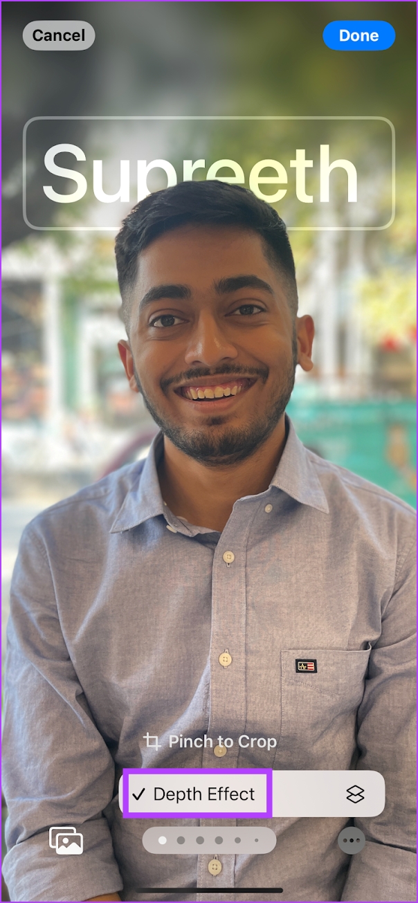 Anda dapat memilih foto dari perpustakaan Anda untuk digunakan sebagai Poster Kontak. Selanjutnya, Anda juga dapat mengaktifkan efek kedalaman untuk hal yang sama.