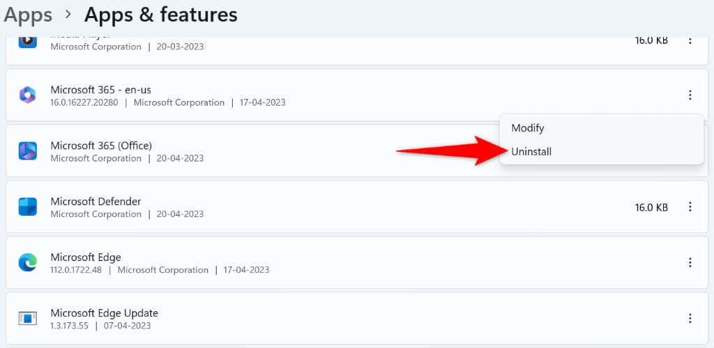 Jika kesalahan Outlook 0x800ccc0e Anda belum hilang meskipun mengikuti metode di atas, upaya terakhir Anda adalah menghapus dan menginstal ulang Outlook di komputer Anda. Melakukannya menghapus semua file aplikasi dan menginstal ulang file baru.