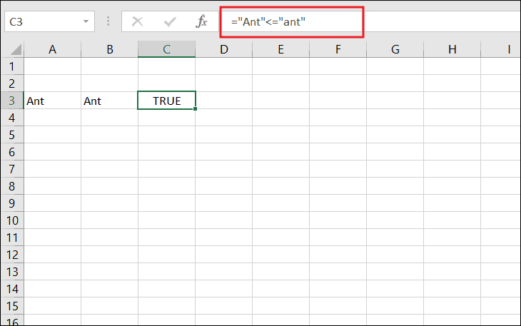 Karena operator logika tidak peka huruf besar/kecil, ia mengabaikan perbedaan huruf besar kecil dan mengembalikan TRUE sebagai hasilnya.