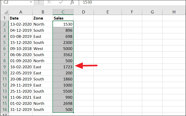 Seperti yang kami sebutkan sebelumnya, Excel menganggap bahwa huruf yang lebih belakangan dalam alfabet lebih besar dari huruf sebelumnya. Di sini, rumus membandingkan huruf pertama A3 dengan huruf pertama B3. Huruf pertama'A' Contoh 3: Saat membandingkan teks, Excel dimulai dengan huruf pertama teks. Jika mereka identik, itu menuju ke huruf kedua. Dalam contoh ini, huruf pertama dari A3 dan B3 adalah sama, sehingga rumus berpindah ke huruf kedua dari A3 dan B3. Sekarang,"p"tidak kurang dari"n", karenanya, ia mengembalikan'FALSE'. Menggunakan'kurang dari atau sama dengan'dengan angka cukup sederhana, siapa pun dapat melakukannya. Anda juga dapat menggunakan operator ini untuk membangun operasi matematika yang kompleks di Excel. Berikut adalah contoh untuk membandingkan angka dengan ‘<=': Anda dapat menggunakan operator'kurang dari atau sama dengan'dengan operator matematika serta operator logika lainnya untuk membuat operasi matematika yang kompleks. Misalnya, coba rumus ini: Dalam perhitungan matematis, hasil operasi logika'TRUE'setara dengan 1, dan FALSE adalah 0. Itu berarti, bagian pertama dari rumus (A4>B3) mengembalikan'0'dan bagian terakhir dari rumus (B6<=A3) mengembalikan'1'. Dan rumus kita akan terlihat seperti ini: Dan hasil yang kembali adalah ‘203’. Selain teks dan angka, Anda juga dapat menggunakan operator'kurang dari atau sama dengan'untuk membandingkan nilai tanggal. Operator logika juga dapat digunakan untuk membandingkan antara tipe data, seperti tanggal dan teks atau angka dan teks, dll. Satu hal yang harus Anda ketahui saat membandingkan tanggal adalah Excel menyimpan tanggal dan waktu sebagai angka, tetapi diformat agar terlihat seperti tanggal. Nomor tanggal Excel dimulai dari tanggal 1 Januari 1900 12:00, yang disimpan sebagai 1,kedua Januari 1900 disimpan sebagai 2, dan seterusnya. Misalnya, di sini daftar tanggal yang dimasukkan di Excel. Untuk melihat angka di belakang tanggal, tekan tombol pintasan Excel menggunakan angka-angka ini setiap kali tanggal dilibatkan dalam perhitungan. Mari kita lihat tabel ini: Terkadang, saat Anda membandingkan nilai tanggal dengan sel, Excel mungkin menganggap nilai tanggal sebagai string teks atau perhitungan aritmatika. Pada contoh di bawah, meskipun A1 lebih besar dari “4-12-2020”, hasilnya adalah “TRUE”. Karena Excel menganggap nilai sebagai string teks. Juga, di sini bagian tanggal (5-12-2020) dalam rumus dianggap sebagai perhitungan matematis: Untuk memperbaikinya, Anda harus menyertakan tanggal dalam fungsi DATEVALUE, seperti ini: Sekarang, Anda akan mendapatkan hasil yang benar: Di excel, operator logika (seperti <=) banyak digunakan dalam parameter fungsi Excel seperti IF, SUMIF, COUNTIF, dan banyak fungsi lainnya untuk melakukan perhitungan yang kuat. Operator ‘<=’ dapat digunakan dalam argumen ‘logic_test’ dari fungsi IF untuk melakukan operasi logika. Fungsi Excel IF mengevaluasi kondisi logis (yang dibuat oleh operator'kurang dari atau sama dengan') dan mengembalikan satu nilai jika kondisinya TRUE, atau nilai lain jika kondisinya FALSE. Sintaks untuk fungsi IF adalah: Misalkan, Anda memiliki daftar daftar nilai siswa, dan Anda ingin memeriksa apakah setiap siswa lulus atau gagal berdasarkan nilai ujian mereka. Untuk melakukannya, coba rumus ini: Tanda kelulusan adalah'50'yang digunakan dalam argumen logical_test. Rumus memeriksa, jika nilai dalam B2 kurang dari atau sama dengan'50', dan mengembalikan'Gagal'jika kondisinya TRUE atau mengembalikan'Lulus'jika kondisinya FALSE. Dan rumus yang sama diterapkan ke sel lainnya. Ini contoh lain: Misalnya kita punya daftar pesanan baju beserta harganya. Jika harga gaun kurang dari atau sama dengan $150, kita perlu menambahkan biaya pengiriman $20 ke harga bersih atau menambahkan biaya pengiriman $10 ke harga. Coba rumus ini untuk itu: Di sini, jika nilai di B2 kurang dari atau sama dengan 150, nilai di D2 ditambahkan ke B2, dan hasilnya ditampilkan di C2. Jika kondisinya FALSE, maka D3 ditambahkan ke B2. Kami menambahkan tanda'$'sebelum huruf kolom dan nomor baris sel D2 dan D3 ($D$2, $D$3) untuk menjadikannya sel absolut, sehingga tidak berubah saat menyalin rumus ke sel lainnya (C3:C8). Fungsi Excel lain yang lebih umum digunakan oleh operator logika adalah fungsi SUMIF. Fungsi SUMIF digunakan untuk menjumlahkan rentang sel ketika sel yang sesuai cocok dengan kondisi tertentu. Struktur umum fungsi SUMIF adalah: Misalnya, Anda ingin menjumlahkan semua penjualan yang terjadi pada atau sebelum (<=) 01 Januari 2019, pada tabel di bawah ini, Anda dapat menggunakan operator'<='dengan fungsi SUMIF untuk menjumlahkan semua nilai: Pemeriksaan rumus mencari semua penjualan yang terjadi pada atau sebelum (<=) 01-Jan-2020 dalam rentang sel A2:A16 dan menjumlahkan semua jumlah penjualan yang sesuai dengan tanggal yang cocok dalam rentang C2:C16. Sekarang, mari kita gunakan operator logika'kurang dari atau sama dengan'dengan fungsi COUONTIF. Fungsi COUNTIF Excel digunakan untuk menghitung sel yang memenuhi kondisi tertentu dalam suatu rentang. Anda dapat menggunakan operator ‘<=’ untuk menghitung jumlah sel dengan nilai yang kurang dari atau sama dengan nilai yang ditentukan. Sintaks COUNTIF: Anda harus menulis kondisi menggunakan operator ‘<=’ dalam argumen kriteria fungsi dan rentang sel tempat Anda menghitung sel dalam argumen rentang. Misalkan Anda ingin menghitung penjualan yang kurang dari atau sama dengan 1000 pada contoh di bawah ini, maka Anda dapat menggunakan rumus ini: Rumus di atas menghitung sel yang kurang dari atau sama dengan 1000 dalam rentang C2 hingga C16 dan menampilkan hasilnya di sel F4. Anda juga dapat menghitung sel dengan membandingkan nilai kriteria dalam sel dengan rentang sel. Dalam kasus seperti itu, tulis kriteria dengan menggabungkan operator (<=) dan referensi ke sel yang berisi nilai. Untuk melakukannya, Anda perlu menyertakan operator perbandingan dalam tanda kutip ganda (“”), lalu menempatkan tanda ampersand (&) di an
