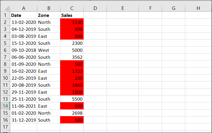 Menggunakan Operator ‘<=’ di Excel Conditional Formatting