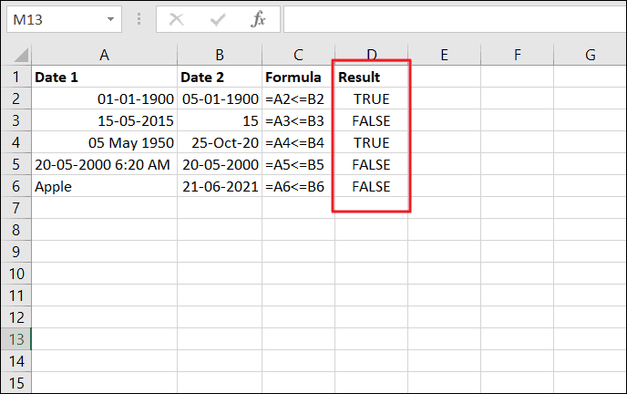 Bandingkan Tanggal dengan Operator ‘<=’ di Excel
