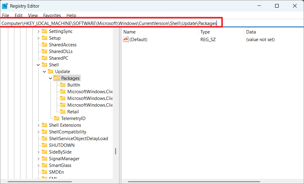 HKEY_LOCAL_MACHINE\SOFTWARE\Microsoft\Windows\CurrentVersion\Shell\Update\Packages