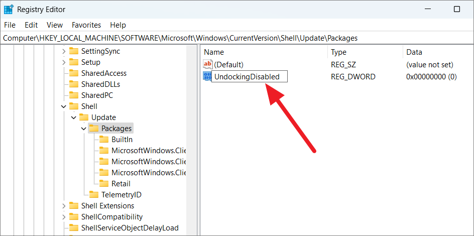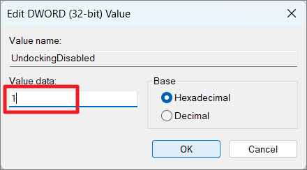 Then, set the value of’UndockingDisabled’to 1.
