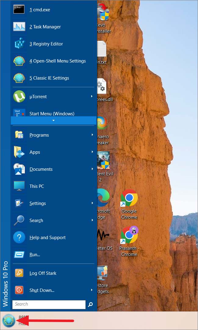 Once you click’OK’, the new Start il menu apparirà nell’angolo sinistro della barra delle applicazioni.