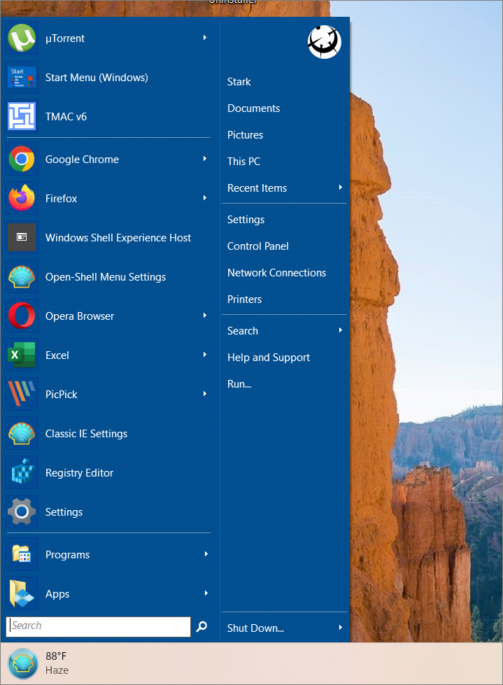 Abilita Open-Shell per l’avvio automatico con Windows Check per gli aggiornamenti di Windows nello spegnimento Configura Ritardi temporali per mostrare menu, suggerimenti informativi per app e cartelle e pulsanti divisi. Abilita trascina e rilascia gli elementi nel menu Start Utilizza colonne singole, multiple e colonne automatiche per mostrare gli elementi nei sottomenu. Modifica immagine profilo utente Configura cartelle di scelta rapida Abilita icone pre-cache, ecc.