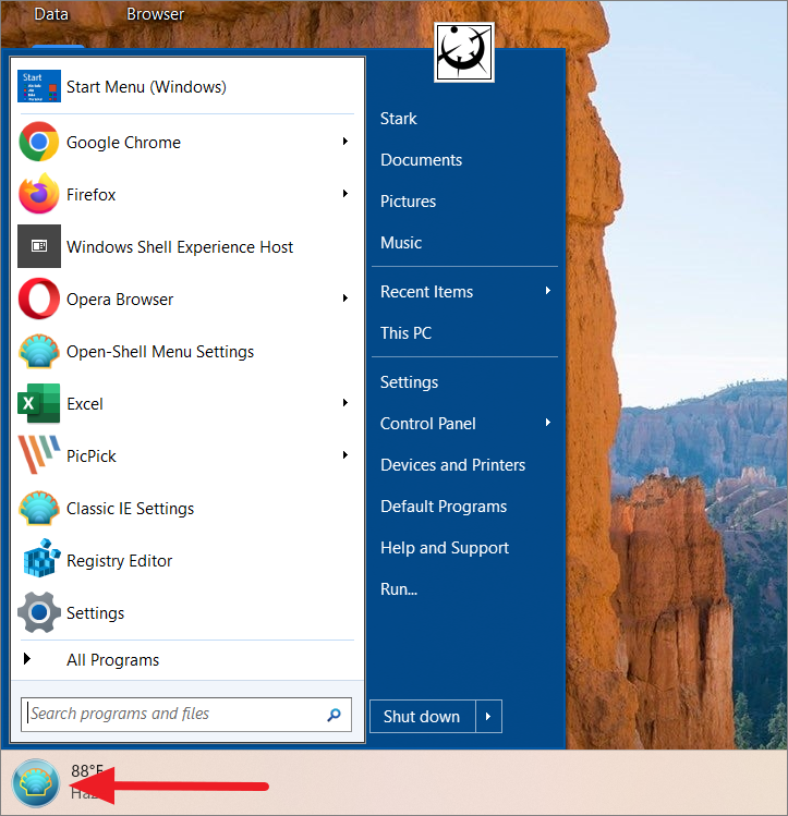 Apri il menu Start facendo clic sull’icona Windows o premendo il tasto Windows. Se hai installato di recente l’app Open Shell, fai clic sull’app”Impostazioni menu Open-Shell”per aprirla.