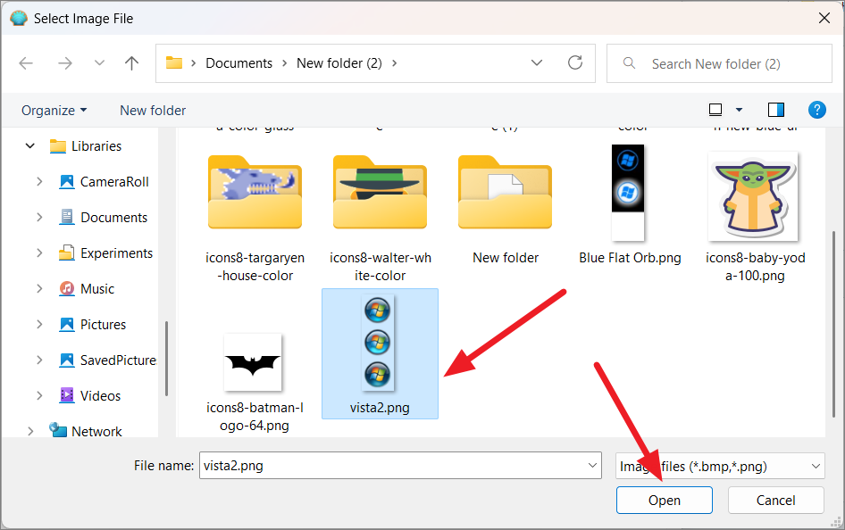 Quindi, scegli un logo o un’immagine che desideri utilizzare come pulsante del menu di avvio e fai clic su”OK”. L’immagine deve essere in formato.PNG o.BMP e deve essere di piccole dimensioni. Puoi scaricare gratuitamente diversi tipi di icone del menu Start di Windows dal sito web della shell classica.