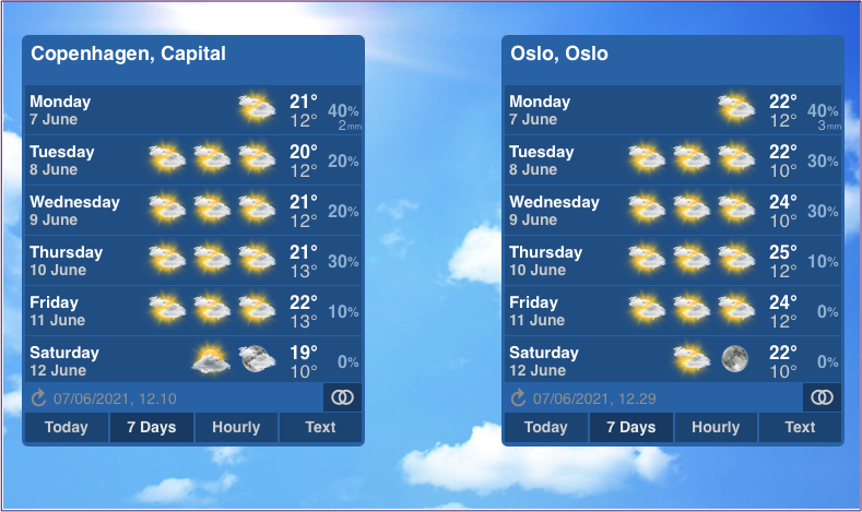 天気ドックは、気温だけでなく、天気予報も表示します。予想される風の範囲。さらに、風がどの方向から来ているのか、さらに予想される雨の量もわかります。