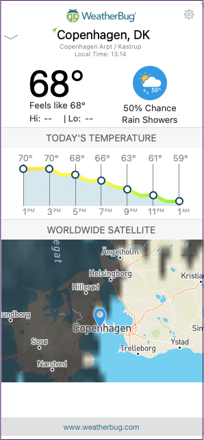 ユーザーは、アプリ自体に 1 日を通して気温がどのように上昇または下降するかを示すグラフも表示されます。さらに、WeatherBug はその日の降水確率を強調しています。