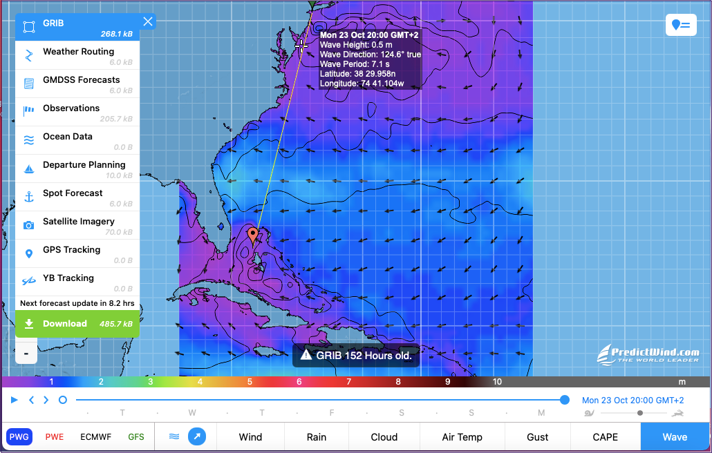 雲量は PredictWind Offshore Weather アプリでも見ることができ、海の温度や気象学者の 7 日間の概要も表示されます。
