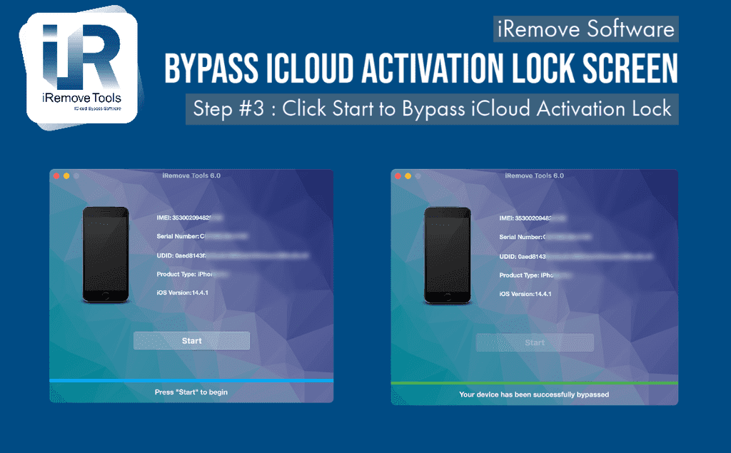 ソフトウェアには、画面上のガイドと1つの[スタート]ボタンが付属しています。クリックすると、iPhoneまたはiPadのiCloudロックがバイパスされます。