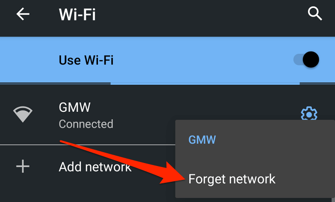 Androidデバイスで、Wi-Fi設定メニューに移動し、ネットワークを長押しして、ネットワークを削除を選択します。