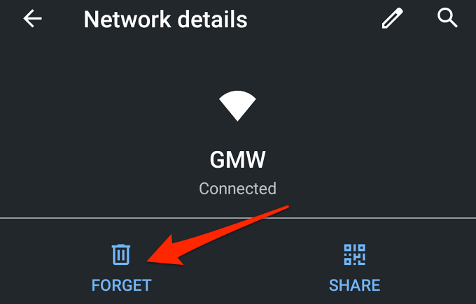 または、ネットワークの横にある歯車のアイコンをタップし、忘れるアイコンをタップします。